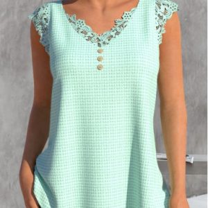 Mint Green Lace V Neck Tank Top