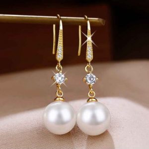 Gold Metal Detail Peal Rhinestone Earrings