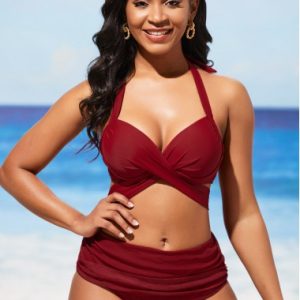 Surplice High Waisted Dark Reddish Purple Bikini Set