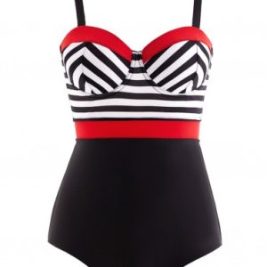 Contrast Spaghetti Strap Belted One Piece Swimwear
