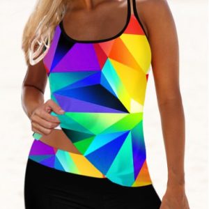 Geometric Print Double Straps Colorful Tankini Set