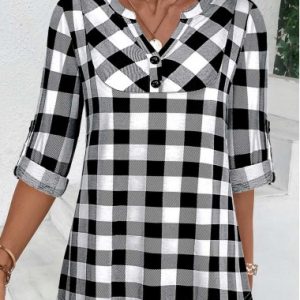 Black Fake 2in1 Plaid Short Sleeve Blouse