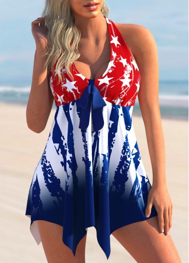 Padded,Wire Free,Removable,Adjustable,1 X Swimdress , 1 X Panty,Navy Blue,S,Panty,84% Polyester, 16% Spandex,Hand Wash,American Flag,Blue,Sport,Bowknot